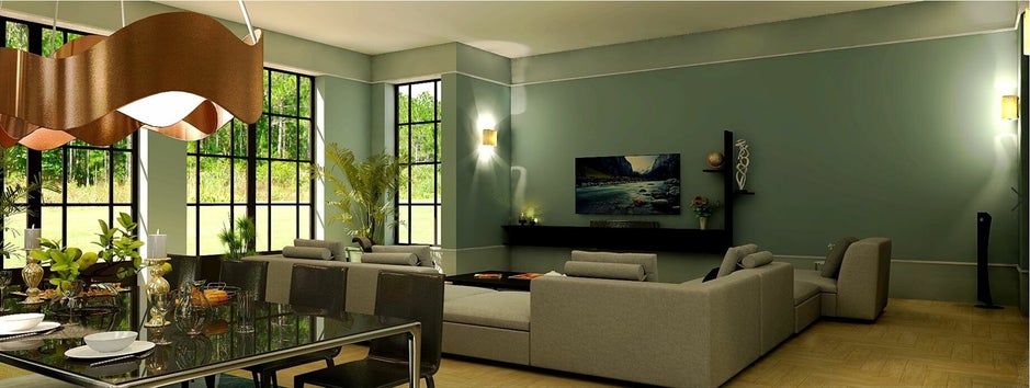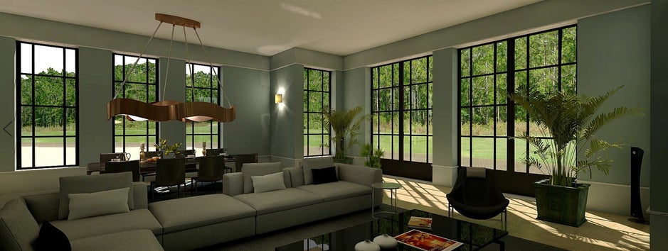 Om de hoge muren extra te accenturen is er voor gekozen om de vensterbanken bij de ramen ook aan de bovenzijde te plaatsen en door te laten lopen over de muren. De ingesloten kaders krijgen een andere kleur dan de buitenrand van de muren. Hierdoor worden de muren onderdeel van het interieur en zijn het geen grote vlakken. Dit is aan de klant uit te leggen met schetsjes e.d. maar het op deze manier te visualiseren worden de ideeën, die je samen met de klant hebt besproken, zichtbaar en helder.