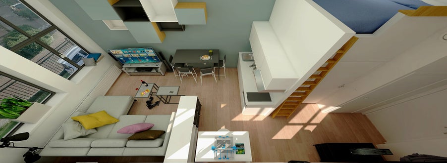 De woonruimte mag men naar eigen inzicht indelen. Natuurlijk wilt elke student een lekkere bank voor de tv, liefst zo groot mogelijk. Maar wat past er? Een 3D visualisatie is een prima tool om "vooraf te zien" of het allemaal past.