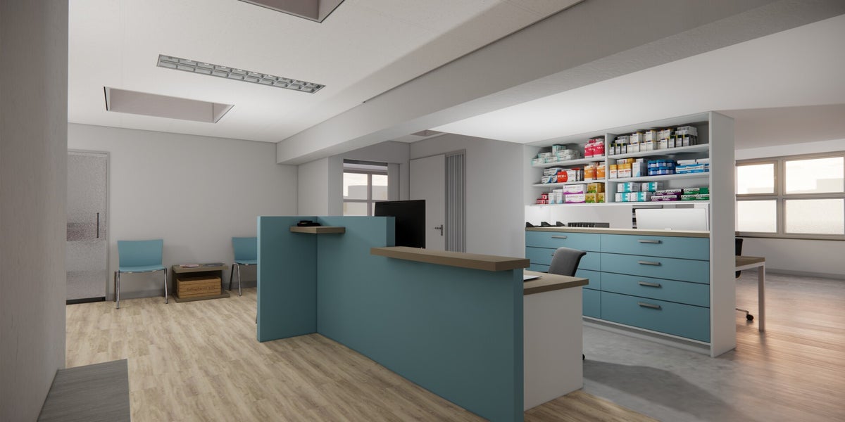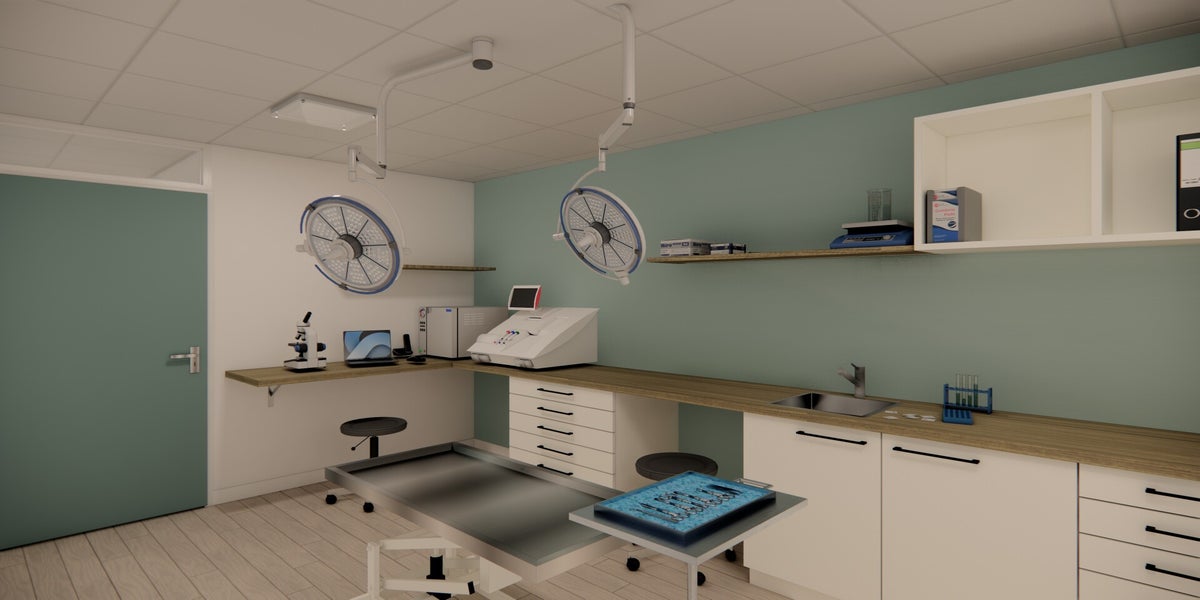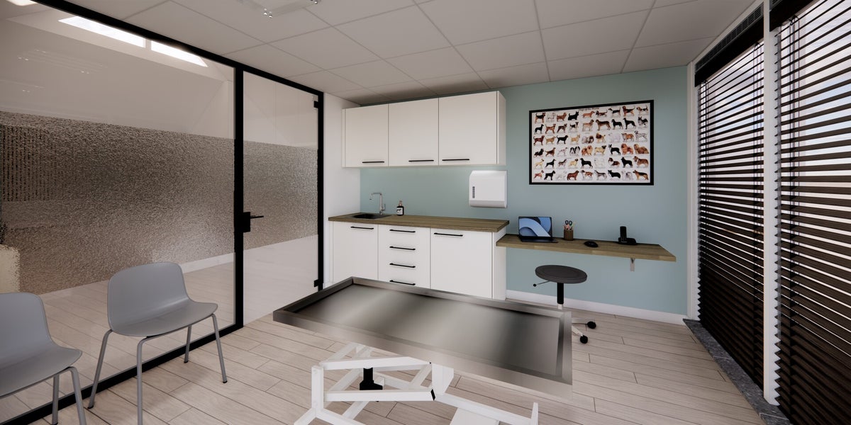Voor dierenartsenpraktijken maak ik regelmatig een compleet (her)inrichtingsvoorstel. Hier ziet u een uitgewerkte case.