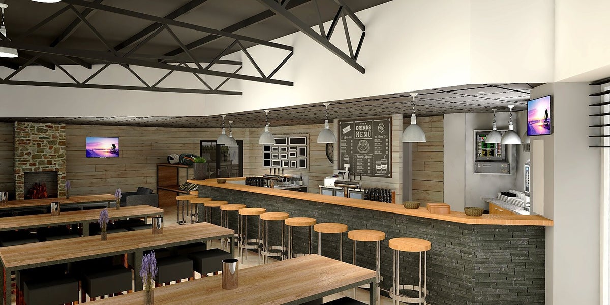 Een sportkantine is een plek waar mensen samenkomen, en dat maakt dit soort opdrachten extra leuk. Bij deze tennisvereniging is de bar vervangen en is de kantine opnieuw ingedeeld op basis van de bezoekersstromen. Zo ontstond een sfeervolle ruimte waar iedereen na het sporten kan ontspannen met een hapje en een drankje.
