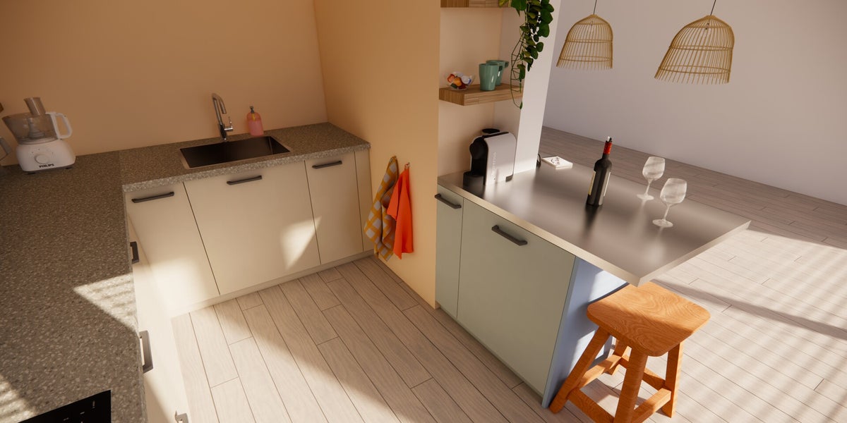Ontdek een selectie van mijn 3D‑visualisaties voor particulieren en professionals. Met oog voor detail, materiaal en sfeer breng ik interieurs tot leven in realistische beelden die laten voelen hoe een ruimte kan worden. Laat je inspireren door projecten waarin kleuren, texturen en functionaliteit samenkomen tot een harmonieus geheel.