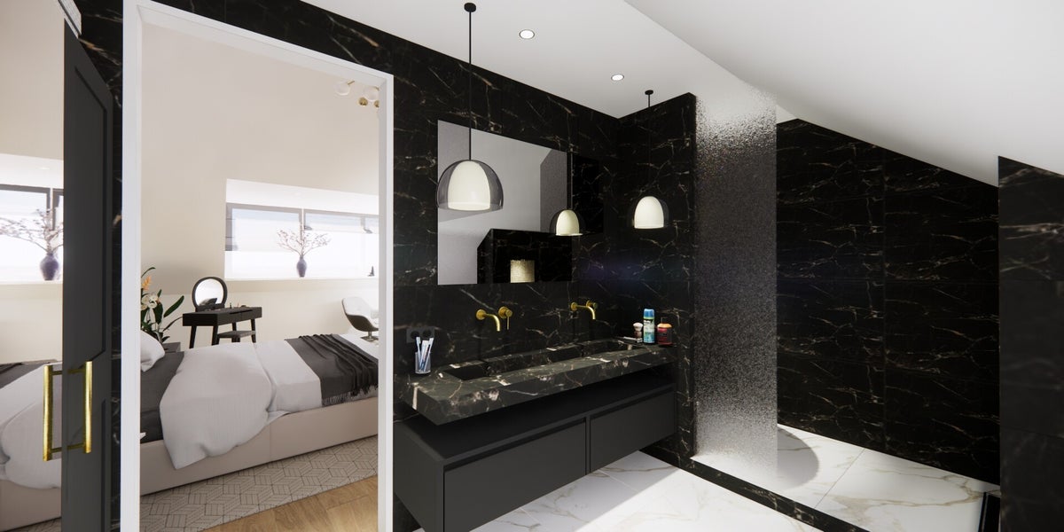 Voor deze zolderverdieping was de wens om er tijdens de verhuizing een complete ouderlijke slaapkamer van te maken, met een eigen toilet, douche, kleedruimte en een comfortabele relaxhoek. Aan de achterzijde komt een brede dakkapel en aan de voorzijde een dakraam, waardoor de ruimte licht en ruim aanvoelt. Om de mogelijkheden helder in beeld te brengen is deze visualisatie gemaakt.